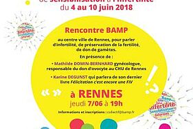 Rencontre le jeudi 7 juin dès 19h à Rennes (café la Quincaillerie) avec le docteur Mathilde DOMIN-BERNHARD gynécologue au CHU de Rennes responsable du don d’ovocyte, et Karine DEGUNST, auteure de « Félicitation c’est une FIV » et de « Félicitation c’est encore une FIV ».