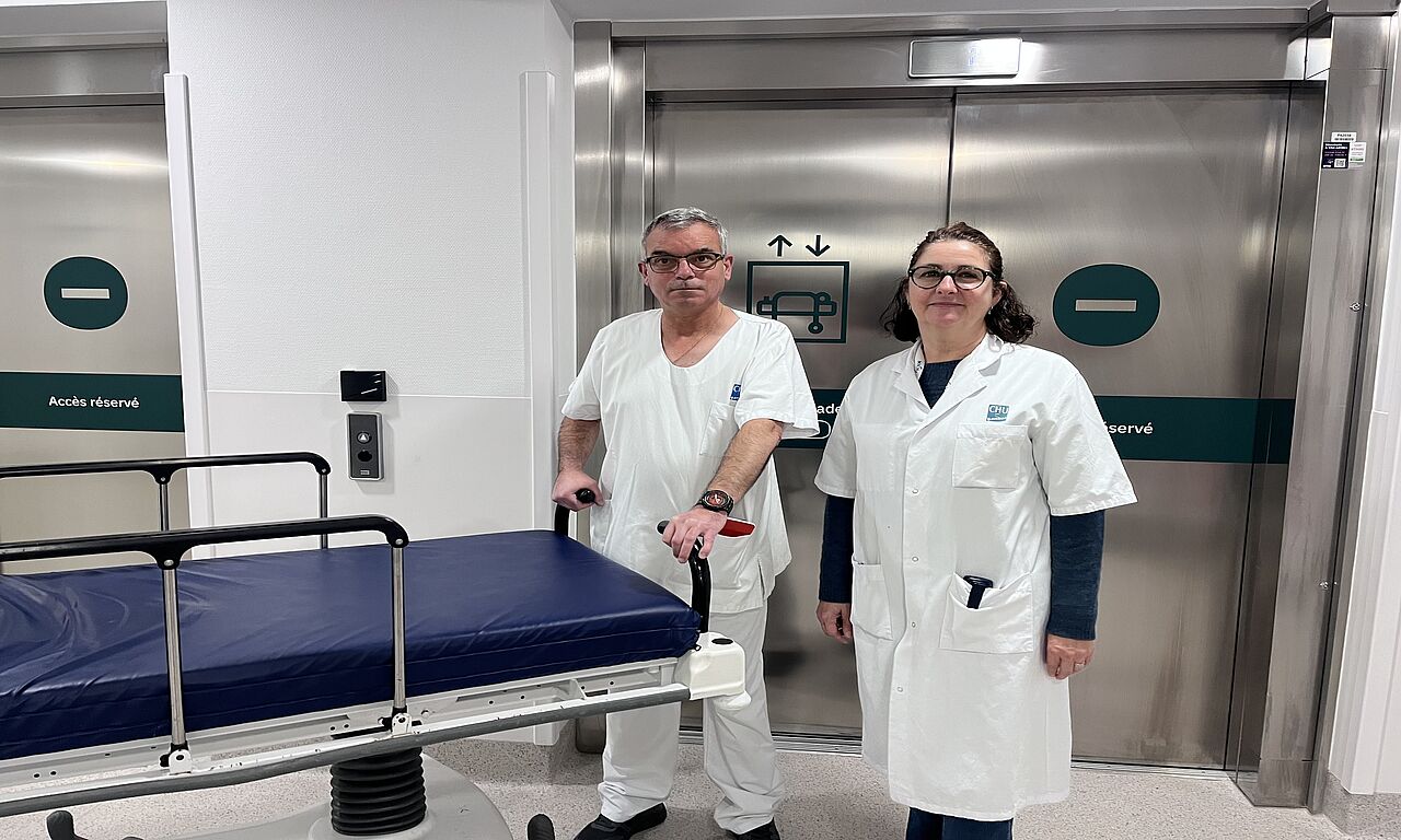 Jean-Michel, participant au DuoDay, a vécu la journée aux côtés d’Alexandre, brancardier. Ensemble, ils ont parcouru les blocs, services, examens et couloirs, découvrant l’intensité, la rigueur nécessaire avec le respect des règles d’hygiène et de sécurité, mais surtout la dimension relationnelle de ce métier clé du parcours patient.