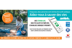 En Ille-et-Vilaine, deux personnes sont victimes chaque jour d’un arrêt cardiaque ! En attendant l’arrivée des secours, les premières minutes sont pourtant cruciales : en seulement 4 minutes, le cerveau subit des dommages irréversibles... Pour augmenter les chances de survie des victimes, les sapeurs-pompiers et le Samu d’Ille-et-Vilaine se lancent dans l’utilisation de l’application Staying Alive. Elle permet aux personnes sensibilisées ou formées aux gestes de premiers secours d’intervenir en l’attente de l’arrivée des équipes d’urgence en cas d’arrêt cardiaque.