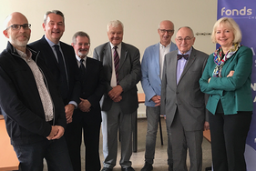 Réunis le 12 juin 2018, Ramiro Riera, Président de GMF Solidarité – Fonds d’Entraide du Groupe GMF et Véronique Anatole-Touzet, Présidente du Fonds Nominoë et Directrice Générale du CHU de Rennes ont signé la convention de mécénat en présence de Michel Radelet, membre du conseil d’administration de GMF Solidarité, Bruno Foricher, Directeur Régional Ouest de GMF assurances et Antoine Rossion, Chargé de mission régional Ouest de l’ANS-GMF et des Professeurs Yannick Mallédant, administrateur du Fonds Nominoë et Vincent Morel, responsable de l’Unité de soins palliatifs.