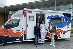 Pour la toute première sortie du véhicule ce vendredi 10 juin, le Pr Bruno Laviolle, le Dr Fabrice Lainé et leur équipe se sont rendus ce matin à Vern-sur-Seiche (35) où ils ont reçu huit patients dans le cadre de l’étude clinique COV-POPART.